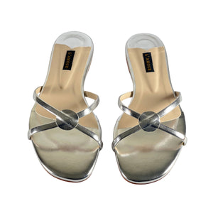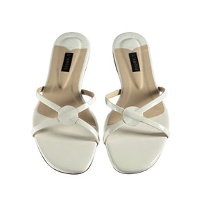 Make simplicity your statement with the ‘Classic Slide’. Crafted in glossy white and soft metallic tones, this flat sandal features a wide strap for secure wear with the option to customize it your way. Perfect for weekend errands or off‑duty styling, this is the pair that always feels right.