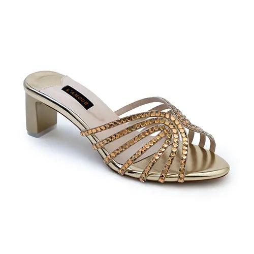 Our signature MAGNAFIQUE is new and revamped now in BLOCK HEELS! It features a classic cage pattern, adorned with glistening gemstones & crystals. Crafted in gorgeous metallic leather with an iridiscent sheen, this striking pair promises to be your go-to event-worthy piece.