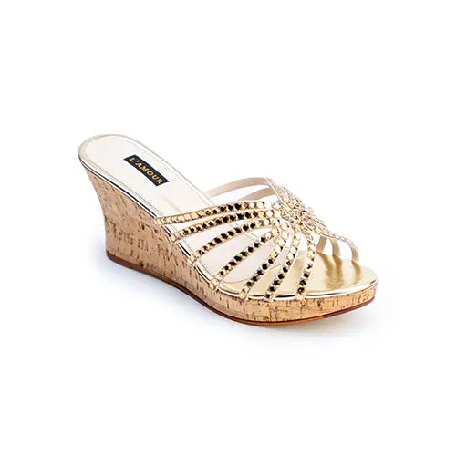 Our signature MAGNAFIQUE is new and revamped now in WEDGE HEELS! It features a classic cage pattern, adorned with glistening gemstones & crystals. Crafted in gorgeous metallic leather with an iridiscent sheen, this striking pair promises to be your go-to event-worthy piece.