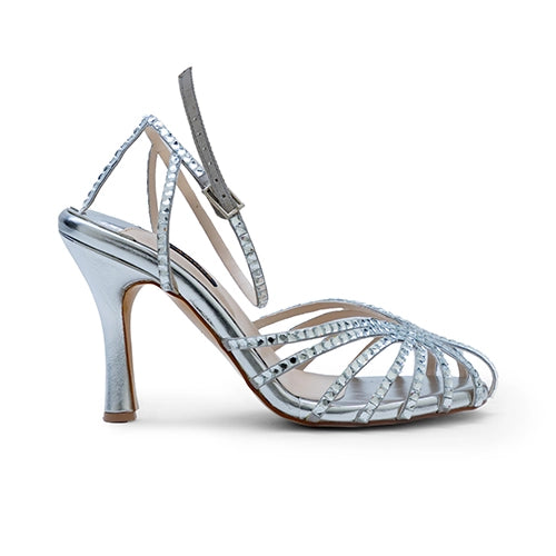 Our signature MAGNAFIQUE is new and revamped now in STILETTO HEELS! It features a classic cage pattern, adorned with glistening gemstones & crystals. Crafted in gorgeous metallic leather with an iridiscent sheen, this striking pair promises to be your go-to event-worthy piece.