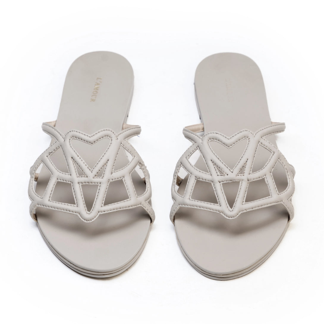The ORAN slides are your go-to summer flats! Easy to slip on & off, the intricate pattern with a hidden heart in the centre adds a cute, feminine touch to these slides. Available in two colourways.